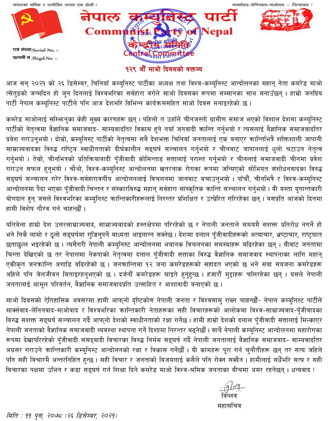 ‘नेपालको कम्युनिष्ट आन्दोलनलाई समाप्त पार्ने साम्राज्यवादी षड्यन्त्र चलिरहेको छ’