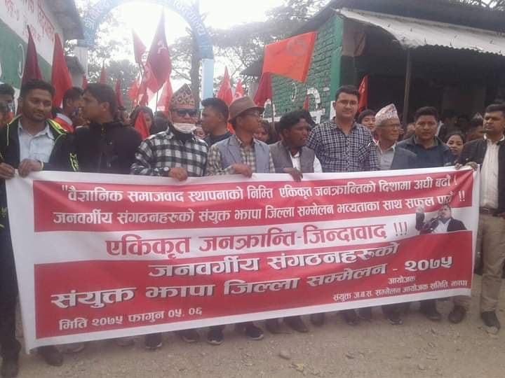 सरकारी कार्यालयहरूको माझमा भएको उक्त कार्यक्रममा झापा जिल्ला सेक्रेटेरी सुमनसिंह पौडेलले सरकारी प्रतिनिधिले मजदुर, सुकुमबासी र गरिब जनतामाथि विभेद, शोषण र दमन नत्यागे गम्भीर परिस्थिति भोग्न तयार हुनुपर्ने चेतावनी दिए । पौडेलले नगरपालिकाका मेयरलगायत प्रतिनिधिहरूले रातारात कसरी पजेरो चढे, उनीहरू रातारात कसरी करोडपति बने ? जनताको न्यायका लागि के गरे भन्ने प्रश्न गरेका थिए । जनप्रतिनिधिहरूले जनहितविपरीत काम गरिरहेमा र सुकुमबासी बस्ती उठाएमा उनीहरूका गाडी सडकमा नगुडेर बममा उड्ने चेतावनी दिए ।
