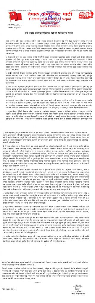 पत्रकार सम्मेलनमा प्रवक्ता प्रकाण्डले पार्टीको १३औं केन्द्रीय समितिको बैठकको निर्णय पढेर सुनाएका थिए ।