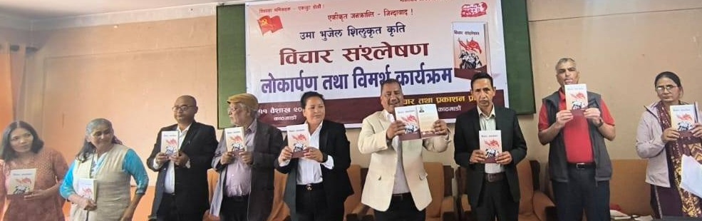 पत्रकार शिव डुम्रेद्वारा संचालित उक्त कार्यक्रममा नेकपाका महासचिव विप्लव सीको प्रमुख आतिथ्यता रहेको थियो भने नेकपाका स्थायी समिति सदस्य तथा प्रकाशन विभाग इन्चार्ज अनिल सीको अध्यक्षता रहेको थियो । कार्यक्रममा उपस्थित सबैलाई जनपत्रकार शोभराज बरालले स्वागत मन्तव्यमार्फत स्वागत गरेका थिए । कार्यक्रममा पुस्तकको बारेमा राजनीतिक विश्लेषक नरेन्द्रजङ पिटर, नेकपा एमालीकी स्थायी समिति सदस्य बिन्दा पाण्डे, नेकपा मासालका नेता मनोज भट्ट, बरिष्ठ साहित्यकार लेखक सौन्दर्य चिन्तक खेम थपलिया लगयतले सुझाव दिएका थिए । – शाहस भट्ट